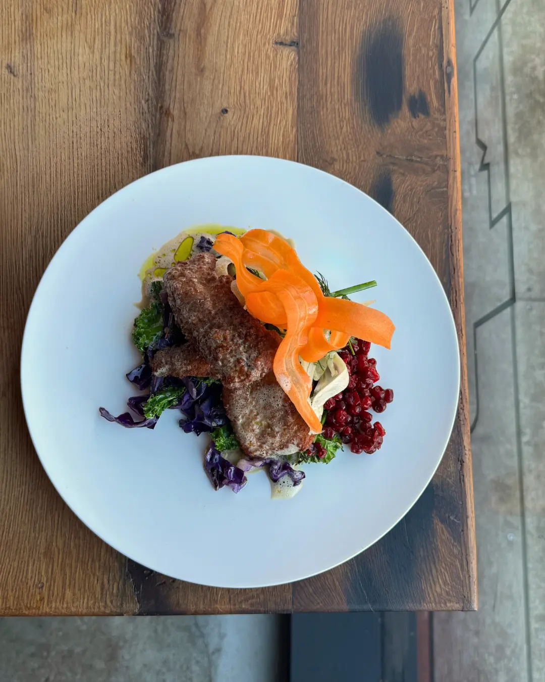Serveret med kanelcreme, syltede og bagt gulerod samt krystalliseret hvid chokolade