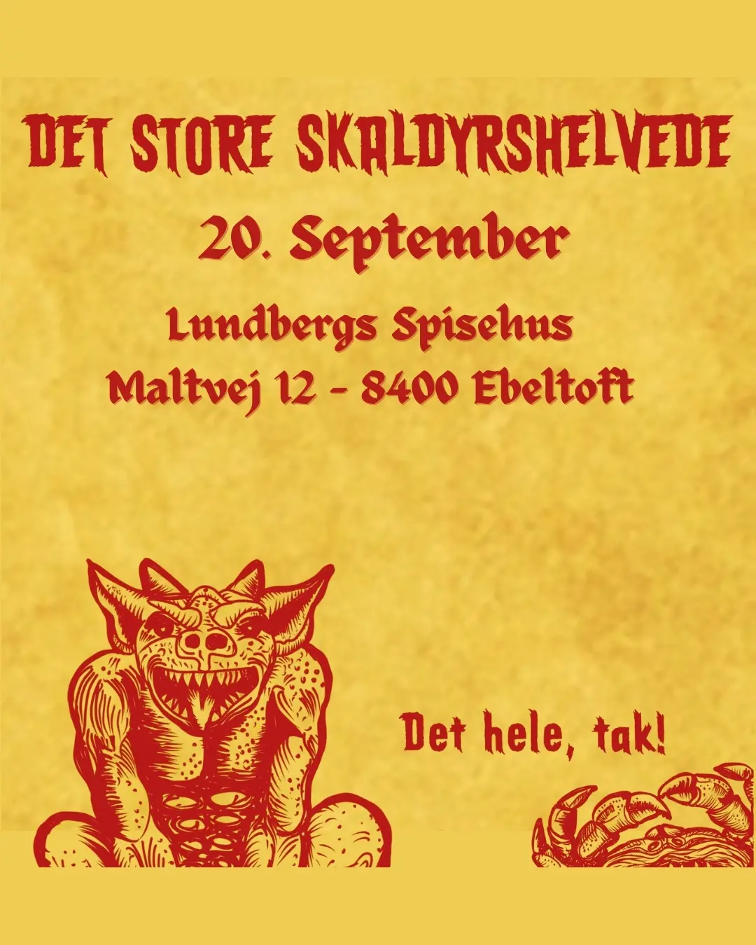 Adgang til Det Store Skaldyrshelvede koster 595 kr. pr. person for 2 timers hedonistisk skaldyrs-ekstase.